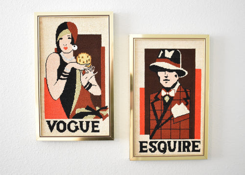 Vintage Needlepoint Art Set – “Vogue Lady” & “Esquire Gentleman” – Mid Century Framed Wall Decor