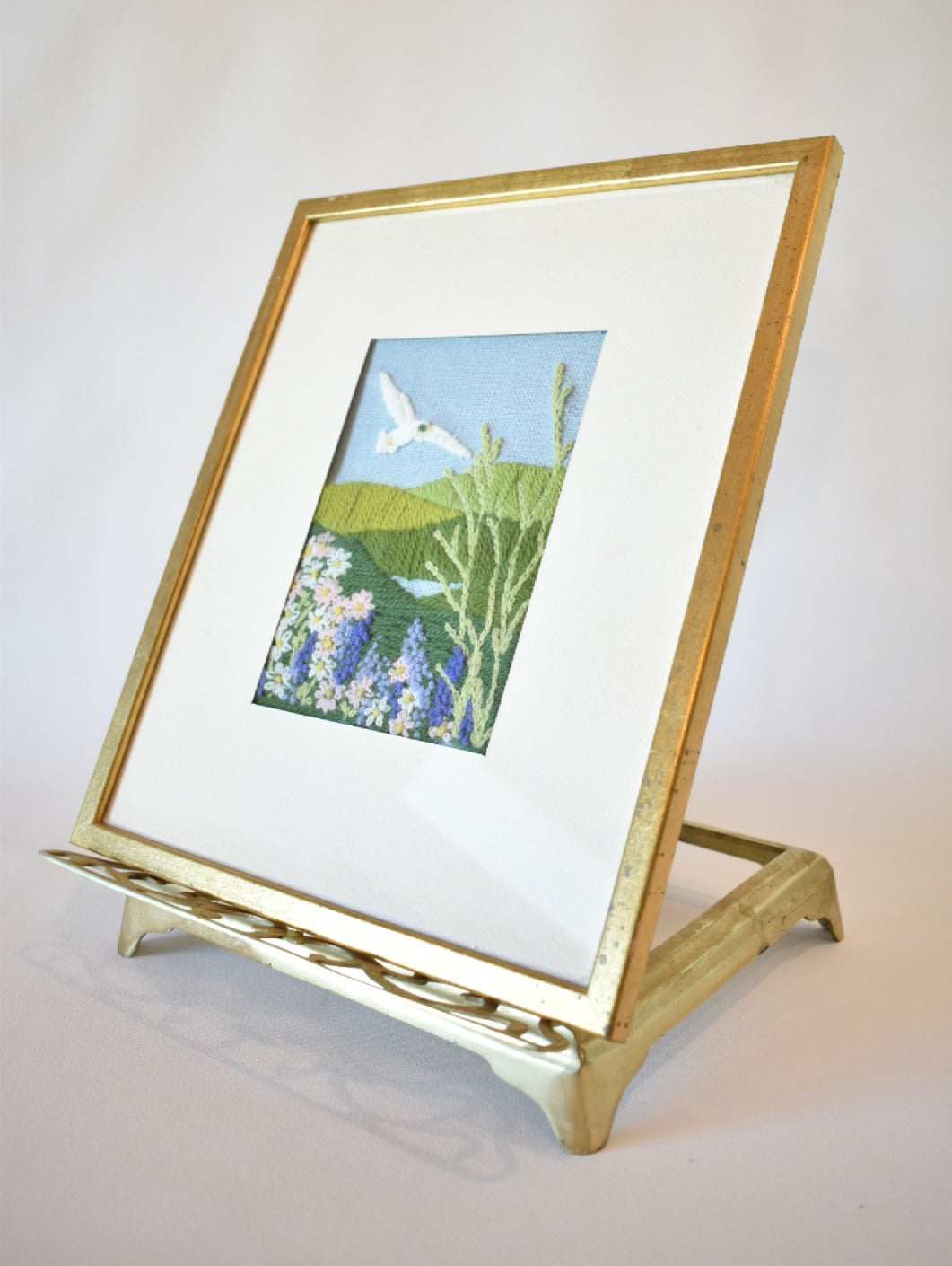 Elevate your space with this striking crewel artwork, where a crisp white bird takes flight over vibrant flowers and serene hills. The textured embroidery adds depth and character, making it a stunning statement piece for any wall. With craftsmanship like this becoming harder to find, this artwork offers both beauty and rarity - a unique accent that blends effortlessly with modern and eclectic décor.